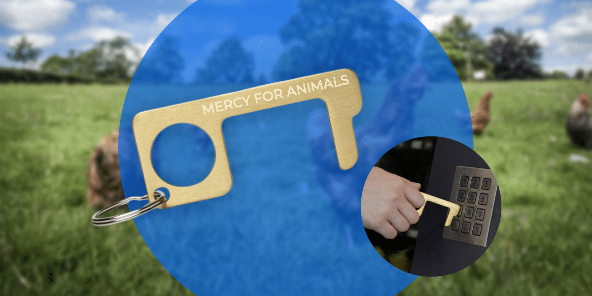 Dad will never lose his keys again with this touch-free Mercy For Animals keychain! This handy little tool not only holds keys but lets Pop open doors, push buttons, and pull handles without picking up—or spreading—germs.