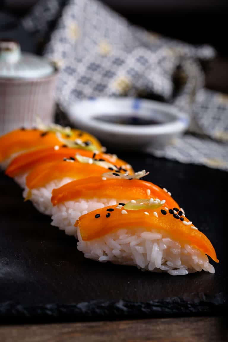 If you’ve never tried carrot lox, now is the time. Smoky and soft, this plant-based version of lox is delicious on bagels and tucked into sushi!