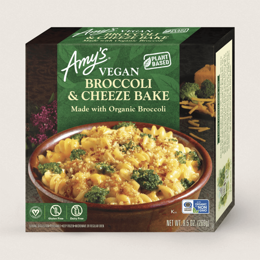 The vegan broccoli and cheeze bake is one of Amy’s newest delicious vegan offerings. You can buy it at Target for $4.29.