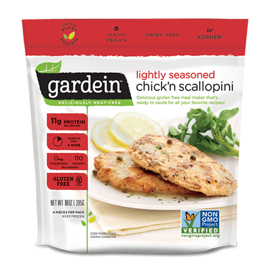 Gardein’s delicious frozen chick’n scallopini is vegan, gluten-free, and kosher. You can pick it up for $4.89 at Albertsons and $4.19 at Target.