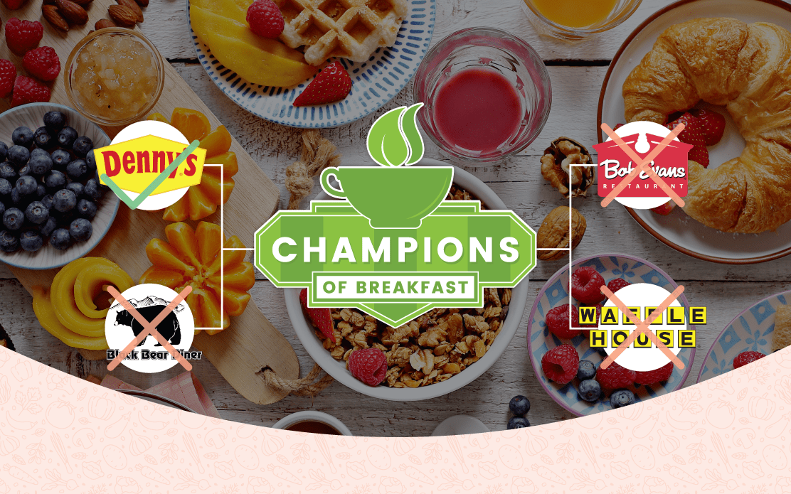 We are thrilled to announce that as a result of your passion and perseverance, Denny’s is now exploring new plant-based breakfast options. The chain’s commitment to developing a delicious and inclusive menu has officially earned Denny’s the title CHAMPION OF BREAKFAST!