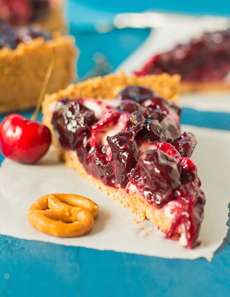 9. Pretzel Cherry Cheesecake