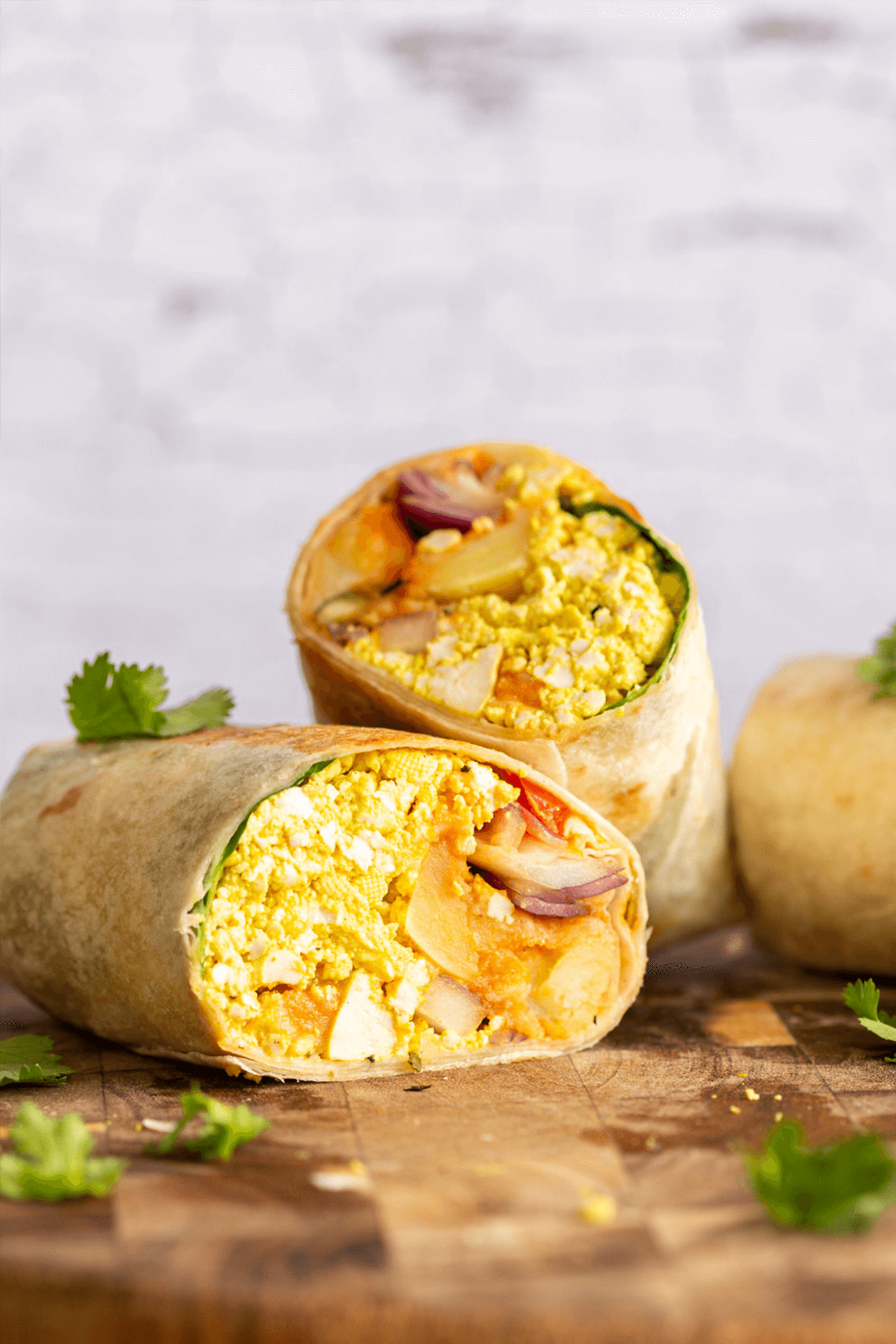 This hearty breakfast burrito is bursting with flavorful tofu scramble and breakfast potatoes. You can mix and match this recipe with different vegetables and dressings.