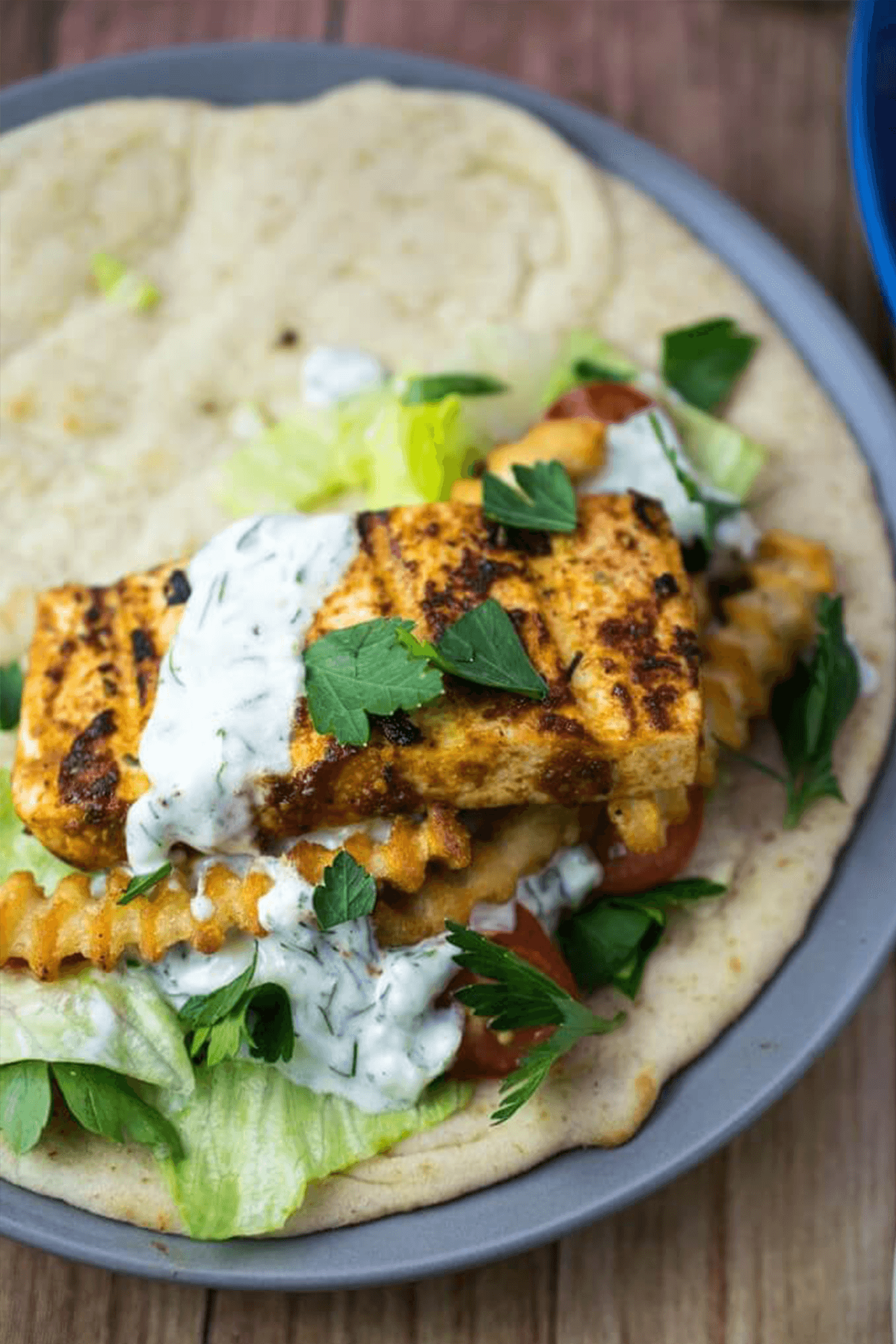 This grilled tofu is marinated in a blend of Greek-inspired seasonings and umami ingredients, so it’s packed with flavor.