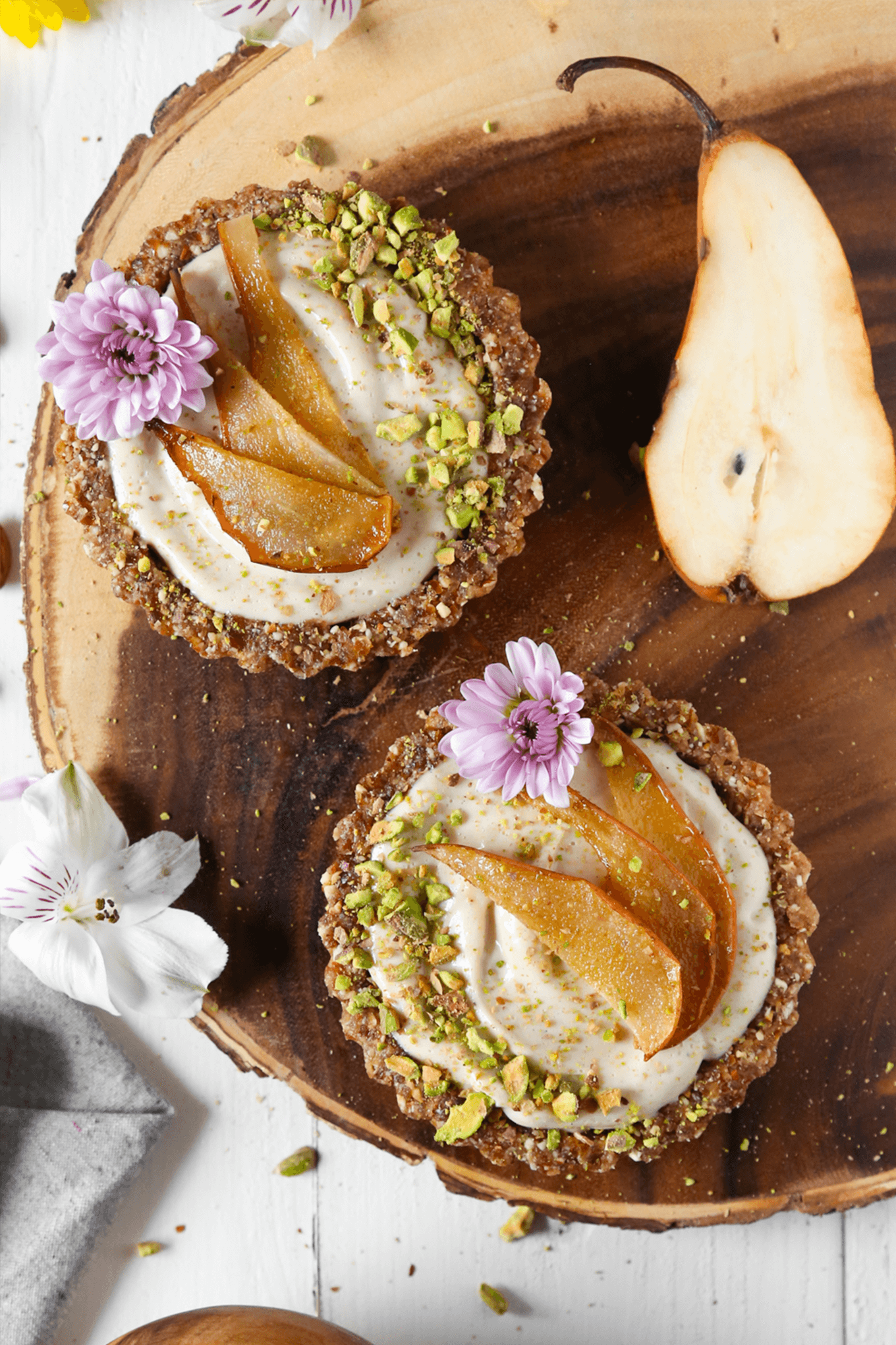 You can create these romantic custard tarts with only nine ingredients and two small tart pans! The rich custard is made using silken tofu, maple syrup, and vanilla extract.