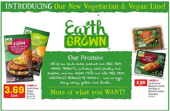 And vegans can cash in on these savings for more than grains and legumes! In addition to all the great staples offered, Aldi recently launched a whole line of vegan specialty products. The new Earth Grown line features meatless meats, vegan cheese, and more!