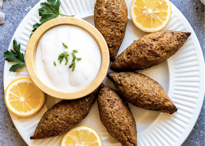 A traditional Levantine dish, kibbeh is made with bulgur wheat, minced onions, and ground beef or lamb. The mixture is formed into balls or patties and can be served raw, fried, or baked. The classic dish can easily be veganized simply by subbing your favorite vegan ground meat for beef, as in this recipe.