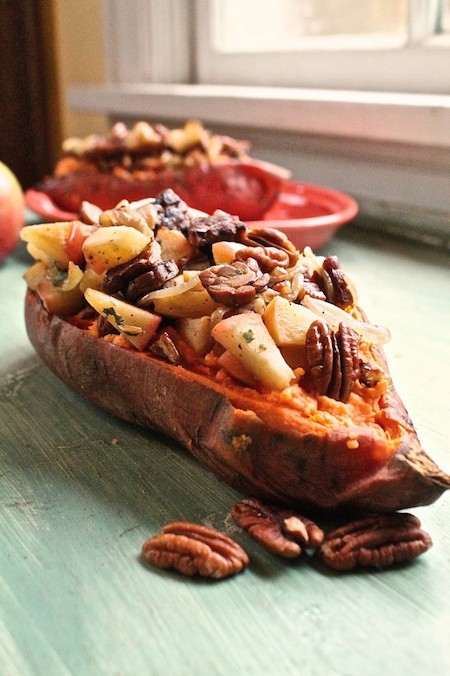 7. Tempeh Bacon and Apple Stuffed Sweet Potatoes