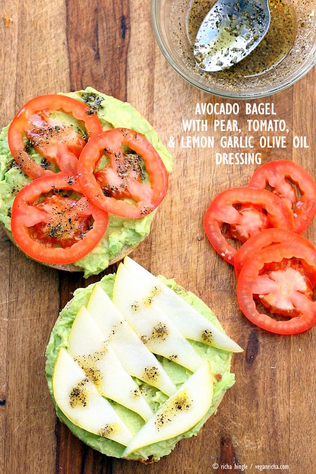 6. Avocado Bagel With Pears and Tomato