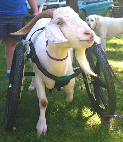 wandering in a park with a hoof infection. Although his leg had to be amputated, Albie now gets around by wheeling his way. But his disability doesn’t stop him from enjoying a full run of the sanctuary and winning the hearts of people who come to visit!