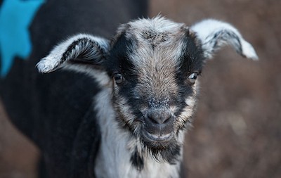 But his luck turned around at eight weeks old, when the kind folks at Sunrise Sanctuary were able to rescue him, and give him the life he truly deserves. Now he spends his time greeting sanctuary guests,