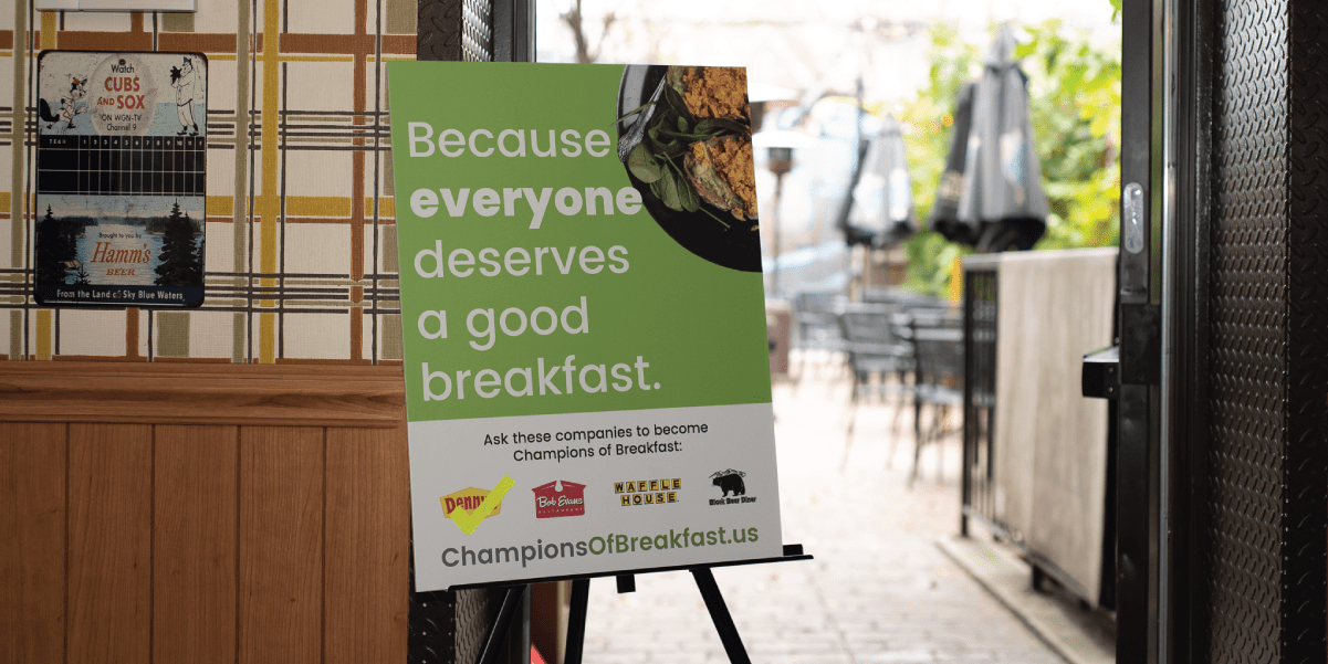 As a result of your passion and perseverance, in October Denny’s pledged to explore new plant-based breakfast options. While we are excited to see Denny’s step up as a champion, there is still plenty of room on the podium!