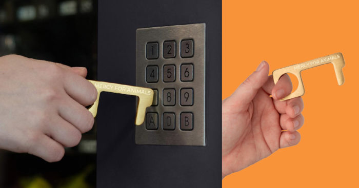 Spread compassion, not germs, with Mercy For Animals’ engraved brass touch-free tool.