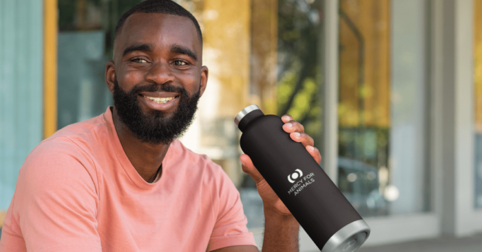 This charming mug is a new addition to the Mercy For Animals store and looks wonderful on any dining table. As durable as it is adorable, this camp mug is the ideal gift for any coffee or tea lover.