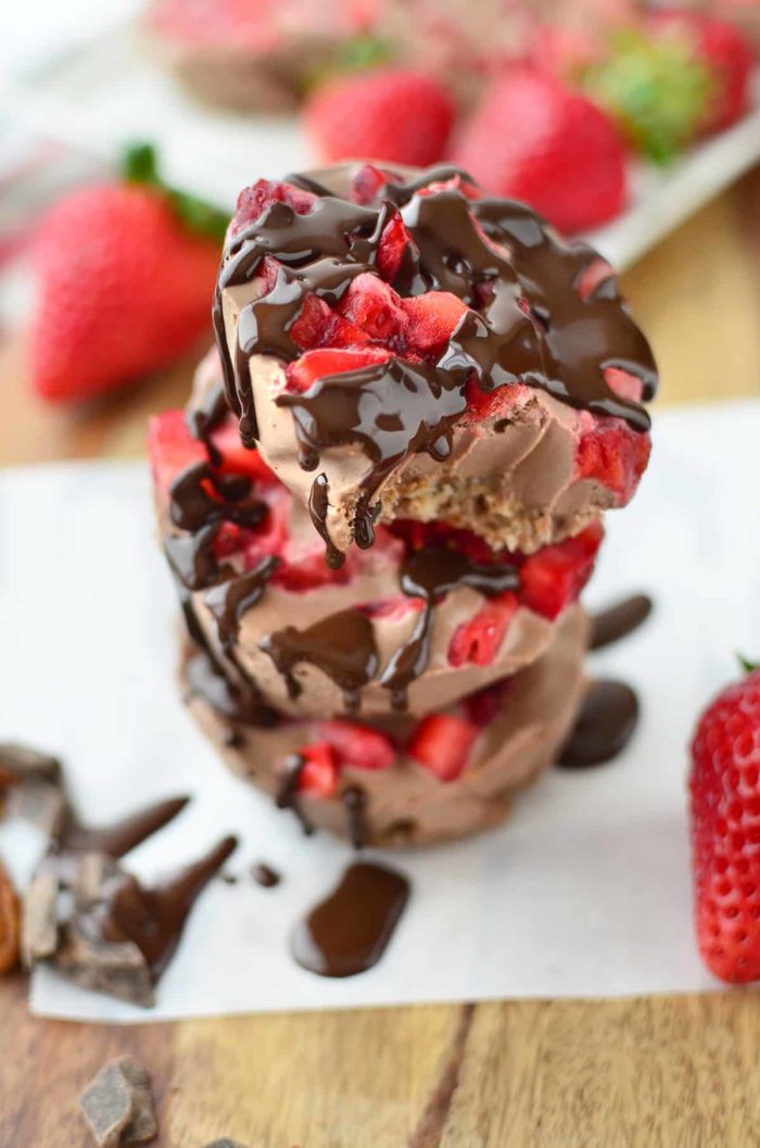 Naturally sweetened with dates and maple syrup, these single-serve strawberry cheesecake bites make excellent appetizers.