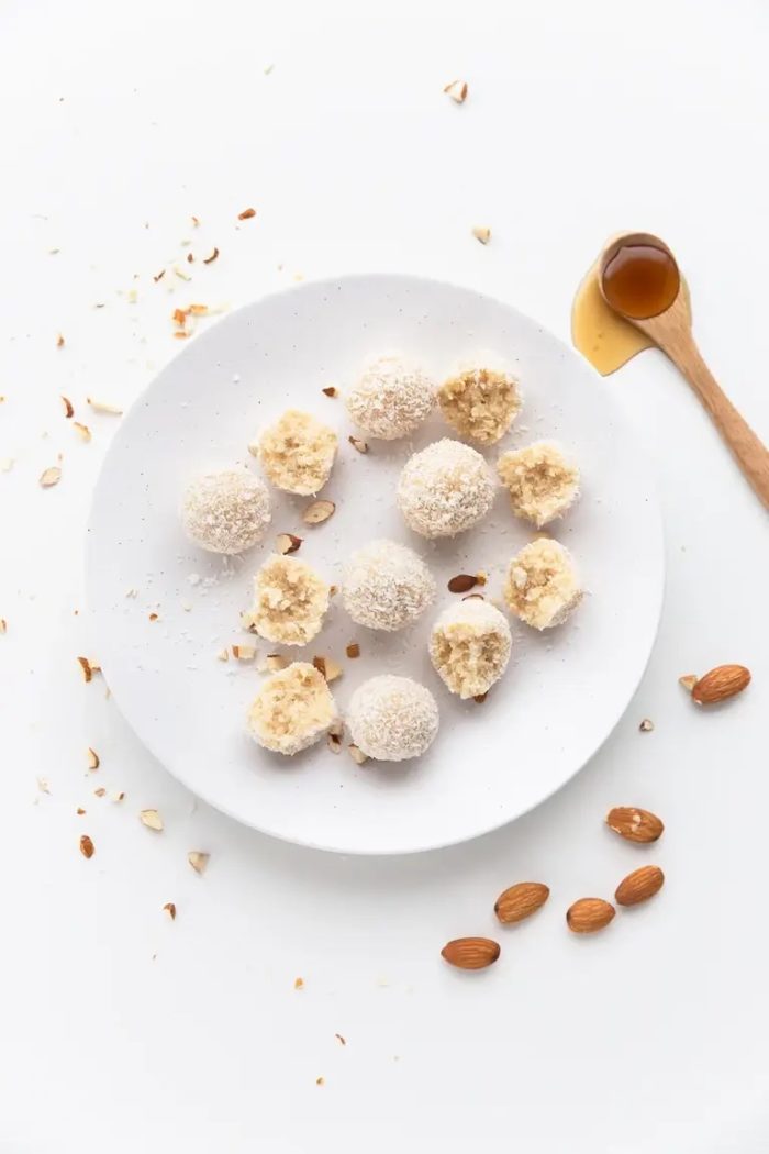 These delicious coconut snowballs require only three ingredients: shredded coconut, almond flour, and maple or agave syrup.