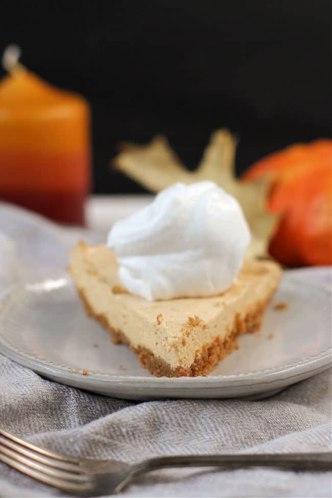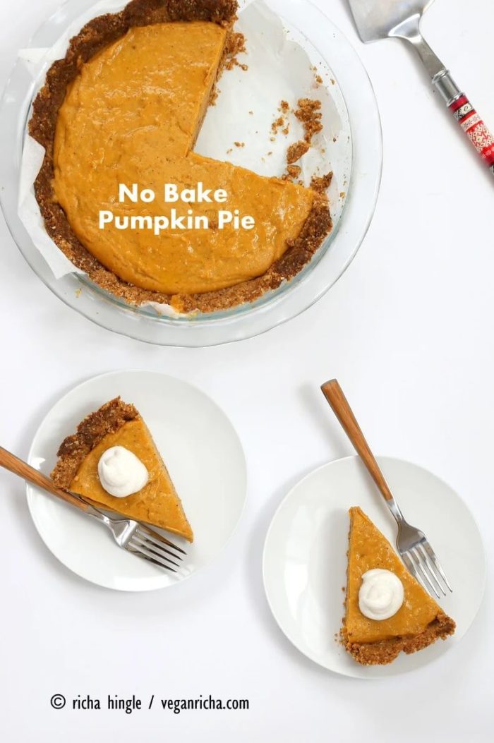This decadent no-bake pumpkin pie recipe uses just seven ingredients for the filling and boasts tantalizing flavor with crystallized ginger, ground ginger, cinnamon, and cloves.