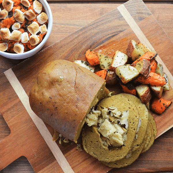 Available for purchase à la carte or as part of a Thanksgiving feast, The Herbivorous Butcher’s roast is the perfect addition to any dinner table. Although it comes unstuffed, The Herbivorous Butcher has plenty of exciting cooking instructions on its website.