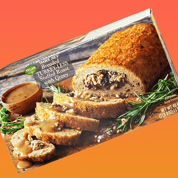 Even Trader Joe’s offers a vegan roast! Coated in a crispy breading, packed with wild-rice stuffing, and served with gravy, this main dish is everything you need to celebrate compassionately this holiday season.