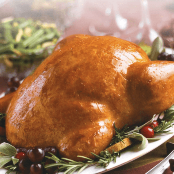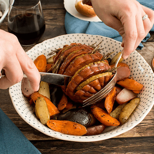 This truly impressive plant-based main course boasts a smoky flavor, a tender texture, and a sweet, tangy glaze. Tofurky recommends serving this roast with your choice of stuffing and vegetables. It also pairs perfectly with classic holiday sides, like mac and cheese!