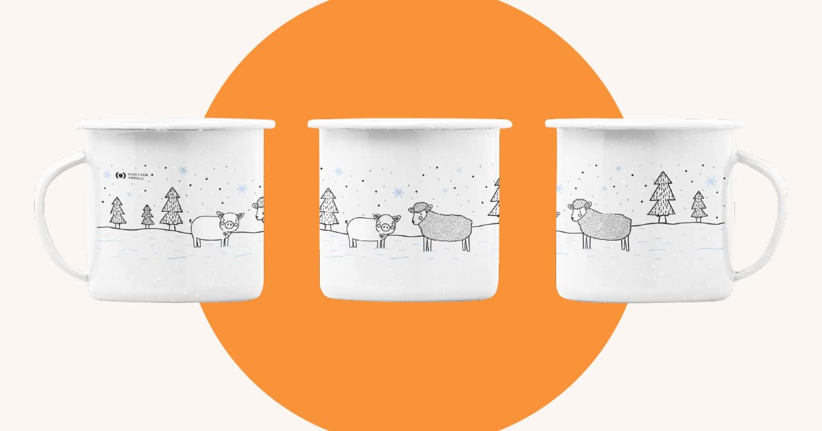 This charming mug is a new addition to the Mercy For Animals store and looks wonderful on any dining table. As durable as it is adorable, this camp mug is the ideal gift for any coffee or tea lover.