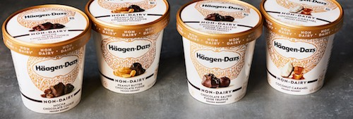 The latest additions to the wide variety of frozen vegan treats come from Häagen-Dazs in not one, but four new flavors: Chocolate Salted Fudge Truffle, Peanut Butter Chocolate Fudge, Mocha Chocolate Cookie, and Coconut Caramel.