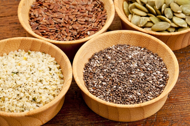 Many seeds—especially flax, chia, and hemp—are packed with healthy omega-3s. Plus, they’re great sources of fiber! Add them to trail mix, salads, or smoothies. You can even use ground flax as an egg replacer!
