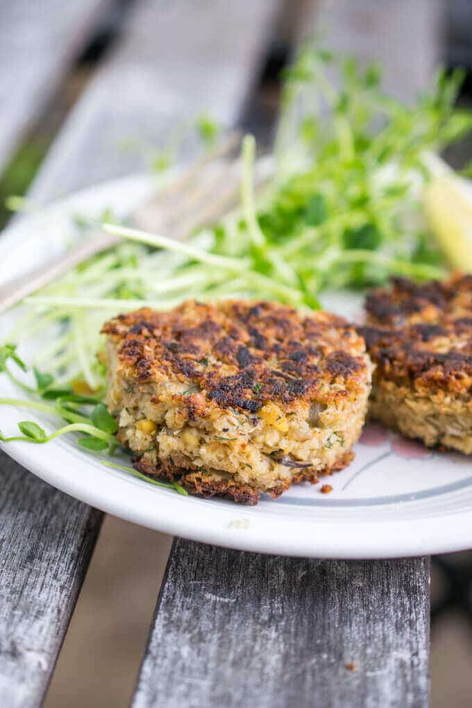 These flaky, crispy crab cakes can be made with either artichoke hearts or banana blossoms. With chickpeas for extra heartiness and the classic seasoning power of fresh dill and Old Bay, these pan-fried beauties are sure to please.