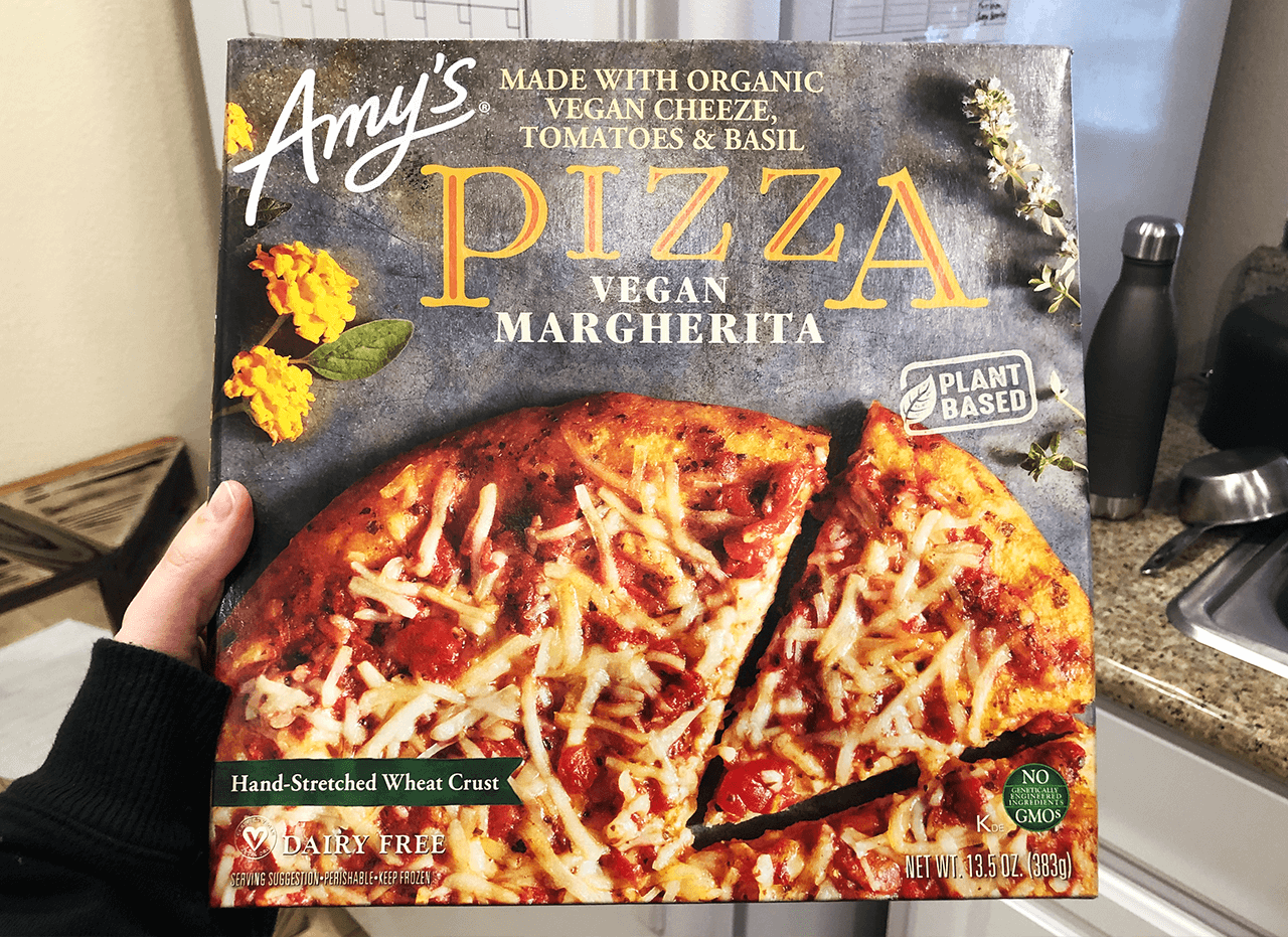 It’s always a good idea to keep a few premade meals in the freezer or cupboard in case you don’t feel like cooking. We recommend Amy’s Vegan Margherita Pizza, Daiya’s boxed Cheezy Mac, Gardein’s Crispy Chick’n Sliders, and Sweet Earth’s Curry Tiger Bowl.